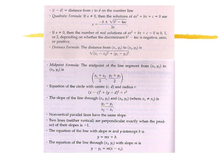 Distance Formula z. The distance between points (x 1, y 1) and (x 2, y 2) is: z. The equation of a circle is: where (h, k) is the center and r is the radius.