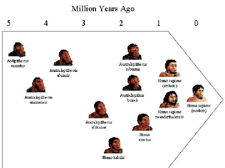 Hominids: Australopithecines �Or “southern ape-men” �Were the first to make simple stone tools �Were bipedal (walked on 2 feet) � Allowed hands to be free to grasp objects � Allowed for looking over tall African savannah grasslands