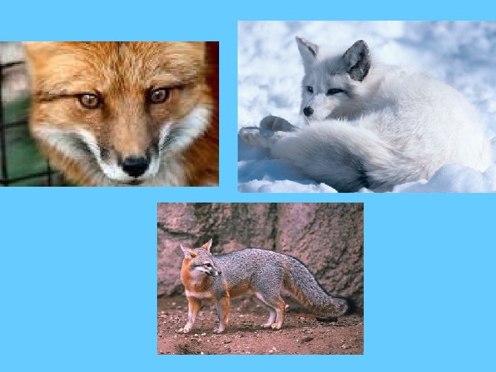 Fox • • Male- dog Female- vixen Born in dens or burrows Preyed upon by bobcats, wolves, coyotes • Humans trap them for their fur