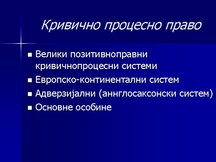 Кривично процесно право n n n OSNOVNE OSOBINE ADVERZIJALNOG KRIVIČNOG POSTUPKA RELATIVIZACIJA NAČELA ISTINE DA LI I U KOJOJ MERI ? ZNAČAJ ISTINE VEĆI U KRIVIČNOM POSTUPKU SAD, NEGO U NEKIM NOVIM KRIVIČNIM PROCEDURAMA U EVROPI. . . ZAŠTO ? ULOGA POROTE