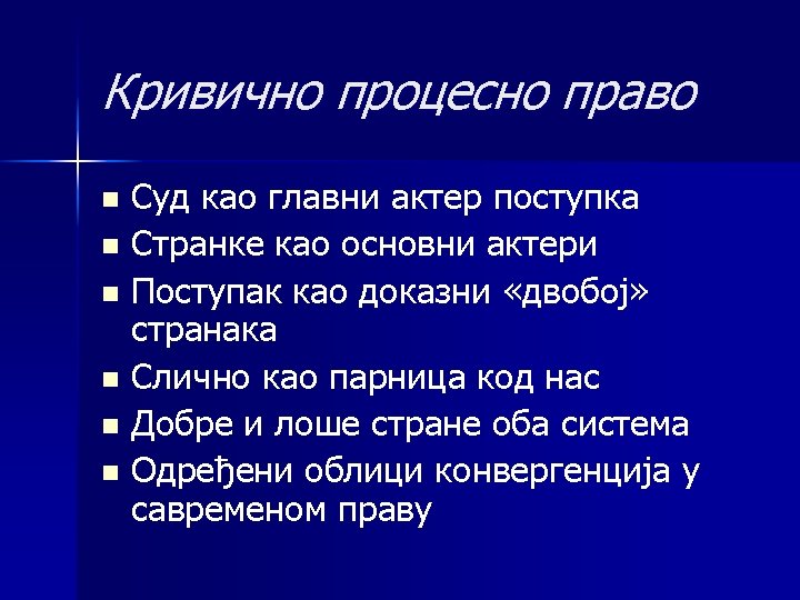 Кривично процесно право n n n ZAKLJUČAK Koja je svrha konvergencije velikih krivičnoprocesnih sistema ? Ko u Evropi i zašto odstupa od tradicionalnih rešenja ? "nove" evropske države. . . Da li je važnija boja mačke ili njena sposobnost da lovi miševe ? Čuvena misao Enrika Ferija. . . Svi zakoni vrede, koliko ljudi koji. . .