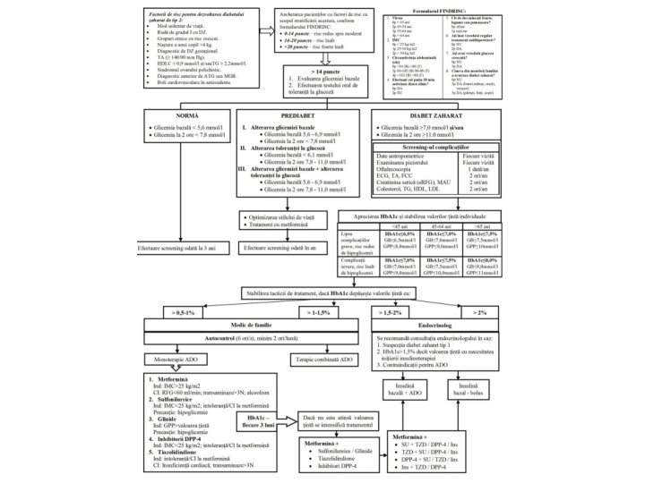 Hb. A 1 c ↑ cu 1 -2 % - biterapie Optimizarea stilului de viață Individualizarea țintelor terapeutice Control Hb. A 1 c o dată la 3 luni Intensificarea terapiei la 6 luni Inițierea, titrare 3 luni Initensificare ↓ Hb. A 1 c ≥ 0, 5, sau ținta atinsă Continuarea terapiei ↓ Hb. A 1 c ≤ 0, 5, sau ținta nu e atinsă Terapie combinată 2 preparate Terapie combinată ADO + insulin Combinație a două preparate