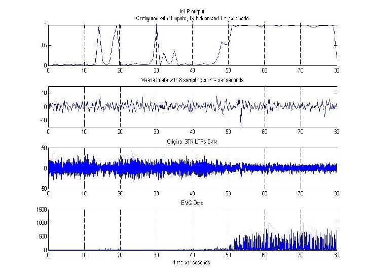 Comments Aim is to accurately predict tremors and then apply stimulation in order to stop them occurring Only stimulate when prediction indicates Needs research into nature of stimulation – frequency/magnitude/time prior for effect/generality with different people Doesn’t matter so much if false positive predictions Does matter if false negatives