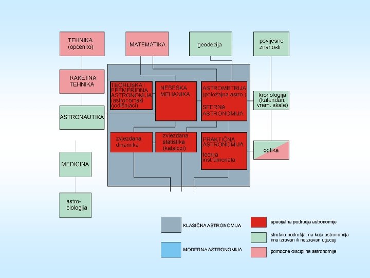 ASTRONOMIJA JE MULTIDISCIPLINARNA ZNANOST, KOJA SE SASTOJI OD NIZA ZNANSTVENIH I STRUČNIH PODRUČJA, I ČIJA SE ISTRAŽIVANJA IZRAVNO ILI NEIZRAVNO PROŽIMLJU S ISTRAŽIVANJIMA U DRUGIM PRIRODNIM I TEHNIČKIM ZNANOSTIMA.