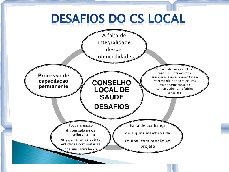 OBJETIVOS Ampliar o controle social no âmbito do Município, envolvendo maior número de entidades (Igrejas, Associações, Sociedade Organizada, etc) para ampliação de proposições, acompanhamento e fiscalização da Política de Saúde; Propor, acompanhar, fiscalizar e avaliar as atividades das Unidades Básicas de Saúde e os serviços prestados à população; participar da elaboração e aprovar o Planejamento Local de Saúde; participar da organização da Conferência Local de Saúde e Pré-Conferência Municipal de Saúde.