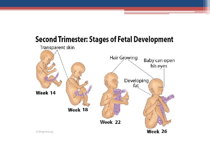 15 – 18 Weeks • skin is almost transparent • fine hair called lanugo develops on head • muscle tissue & bones keep developing, bones become harder • baby begins to move and stretch. • liver and pancreas produce secretions •