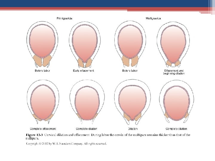 Early Labor • open (dilate) the cervix to about 3 cm (1 in. ). 1 st time mothers can have many hours of early labor without the cervix dilating ▫ dilation progresses 1 cm/2 hr in “true” labor • cervix has to efface (thin) ▫ starts 2 – 3 cm paper thin(by end of active phase)