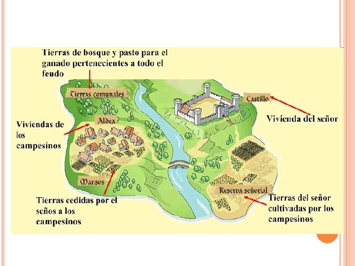 RELACIONES FEUDALES Relaciones señoriales o de servidumbre. � � Entre nobles y campesinos (señor y siervo) Carácter social. Señor aporta: protección y derecho a trabajar la tierra Siervo aporta: trabajo en la reserva señorial, impuestos, otros servicios.