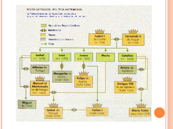 LA UNIÓN DINÁSTICA Unión de tipo confederal: Mantenimiento de leyes Política exterior conjunta Colaboración en política interior � Poder de los dos monarcas reconocido en ambas coronas Lema “tanto monta, monta tanto” Firma de documentos “El Rey y la reina” Unificación de símbolos Castilla será la parte fuerte de esta unión � Centralismo político � Más población y riquezas.