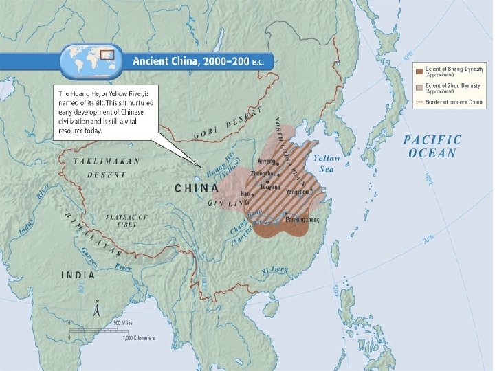 Geography • Natural barriers isolate ancient China from all other civilizations – The Yellow Sea, East China Sea, and the Pacific Ocean in the East – The Taklimakan Desert and the 15, 000 foot Plateau of Tibet in the west – The Himalayas in the southwest – The Gobi Desert and the Mongolian Plateau in the north