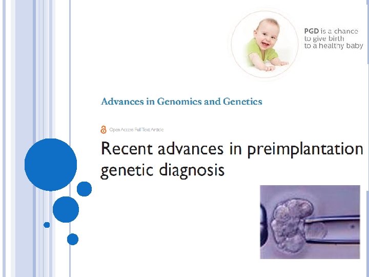 PREIMPLANTATION GENETIC DIAGNOSIS PGD PGD involves the genetic