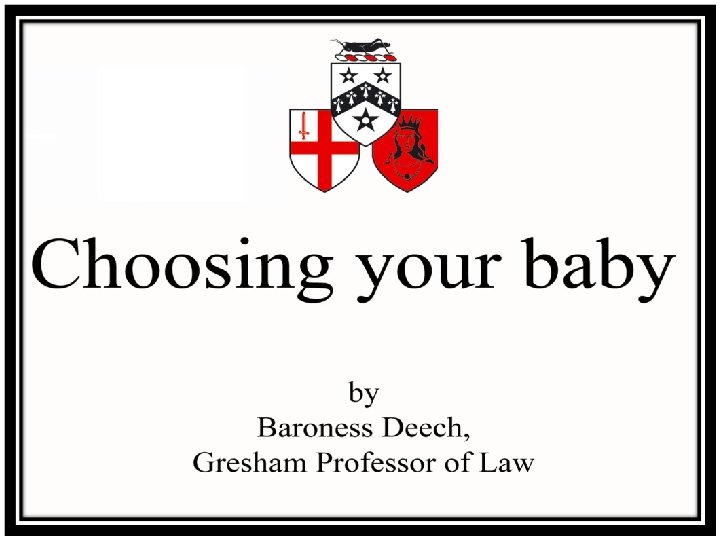 Designer deafness • Cl 14 prevents selection of embryos for deafness; disabled embryo not to be preferred • Does this impede reproductive liberty and undermine reproductive confidence in the deaf community? • Deliberate creation of deaf babies is wrong