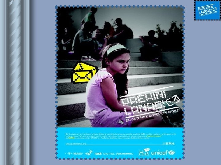 Slaven Bilić-ambasador dobre volje UNICEF-ov ambasador dobre volje Slaven Bilić, zaštitno lice akcije “Prekini lanac” istaknuo je da odgovornost za sprječavanje nasilja među djecom posao cijelog društva, prvenstveno roditelja, ali i škola, medija te svih ostalih.