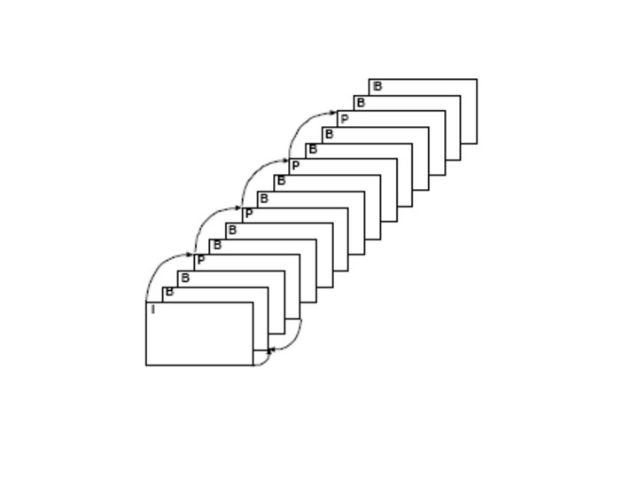 /*Input: secventa de cadre video digitale; Output: aceeasi secventa comprimata*/ { Imparte secventa de cadre in grupuri de imagini (“groups of pictures” GOPs), identificand cadre I, P si B. Imparte fiecare cadru in macroblocuri. Identifica cadre I (“intraframes” de comprimat spatial cu JPEG), cadre P (“forward prediction frames”, de comprimat in legatura temporala cu un cadru I sau P precedent) si cadre B (“bidirectional frames”, de comprimat in legatura temporala cu cadre I si/sau P precedente sau urmatoare). Pentru fiecare cadru P si B compara cadrul cu cadrul I sau P corespunzator pentru a determina un vector de miscare (sau mai multi vectori de miscare). Inregistreaza valorile diferentiale pentru cadrele P si B (diferenta dintre valoarea de pixel asteptata, ajustata de compensatia miscarii si valoarea actuala). Pentru toate cadrele comprima cu JPEG transforma datele in domeniul frecventa cu DCT; aranjeaza in ordine zig-zag; cuantizeaza aplica codificare de entropie (ex. Codificare Huffman) }