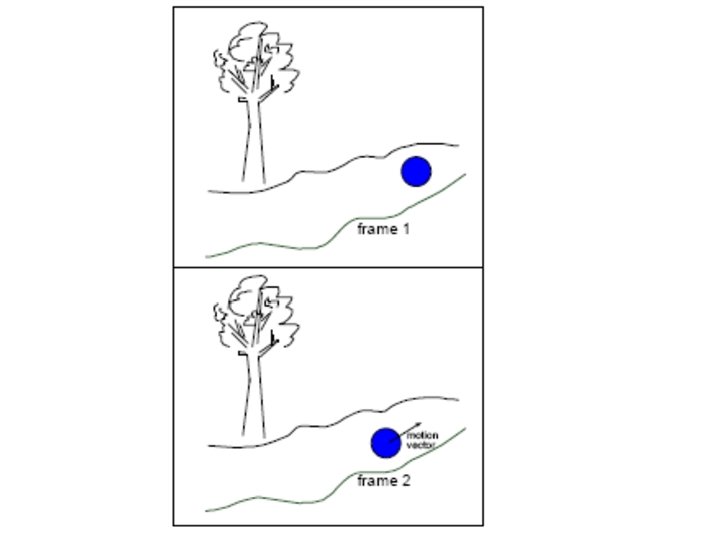 Pasii 3 si 4. Pentru fiecare cadru P si B compara cadrul cu cadrul I sau P corespunzator pentru a determina un vector de miscare (sau mai multi vectori de miscare). Inregistreaza valorile diferentiale pentru cadrele P si B (diferenta dintre valoarea de pixel asteptata, ajustata de compensatia miscarii si valoarea actuala). Acest pas se numeste estimarea miscarii. De multe ori nu exista prea multa miscare intre un cadru si cadrul urmator, deci nu este eficient sa se trimita aceleasi informatii in mod repetat. Este mai economic sa se determine diferentele intre un cadru si cadrul urmator, utilizand codificarea diferentiala. De multe ori valoarea diferentei dintre doi pixeli corespunzatori din doua cadre succesive este mai mica decat valoarea insasi a pixelului. Adesea diferenta este 0, deci o secventa de 0 -uri se preteaza compresiei. Se considera un exemplu: o minge mare albastra rostogolindu-se pe o alee (nimic altceva nu se schimba in scena respectiva). In cadrul 2 mingea este deplasata putin spre stanga fata de cadrul 1 (cu x pixeli la stanga si y pixeli in jos). Diferenta dintre macroblocul din cadrul 1 si macroblocul corespunzator din cadrul 2 se numeste eroare de predictie.