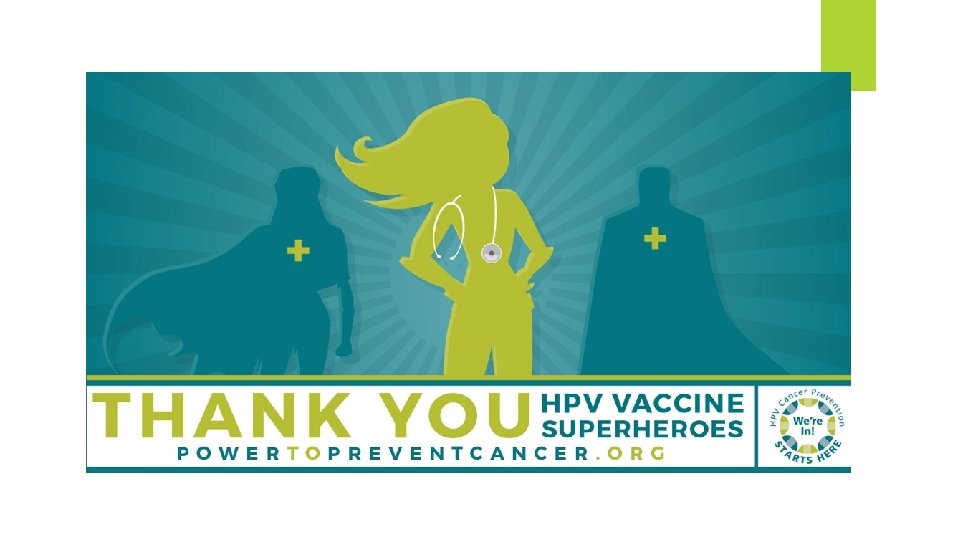 Take Home Point – Too late Mean age at 1 st HPV shot – 16, potential already exposed to virus Lower immune response Only 1 out of 179 females with premalignant cervical cancer received the HPV shot at recommended age 12