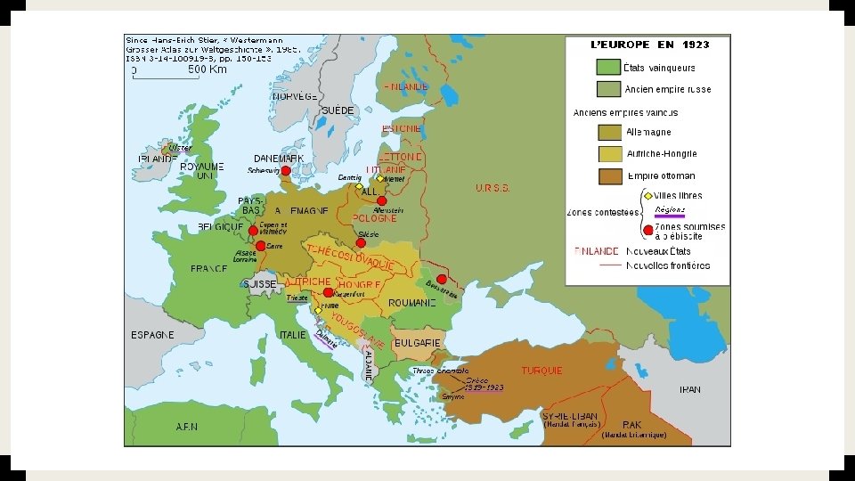 L’EMPIRE AUSTRO-HONGROIS ■ l'Autriche-Hongrie a été partagée en : ■ une Autriche réduite au territoire majoritairement occupé par des germanophones ■ un État hongrois independent ■ la Tchécoslovaquie ■ une fédération des Slaves du Sud est créée : la Yougoslavie ■ la Pologne (avec des territoires enlevés à l' Allemagne et à la Russie) ;