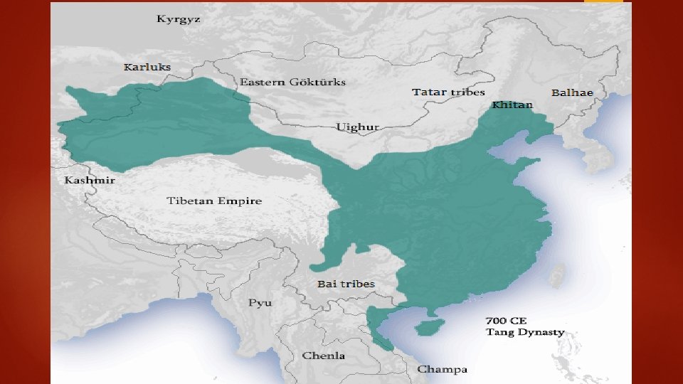 The Tang Dynasty The Tang ruled China for nearly 300 years, and built their empire on a strong central government and the conquest of vast territories. Tang Ruler • Dynasty was founded by military leader Tang Gaozu • Tang Taizong (ty dzoong) became emperor in 626 CE (son of Tang Gaozu) • Stabilized the government by using a strong bureaucracy (government system with many departments led by appointed officials) • Each official had a rank and fixed responsibilities • This system remained at the core of Chinese government until the 1900 s • The Empire doubled in size as well as its population • Wu Zhao (woo jow) became the only woman to rule china on her own (690 -705) • Was a capable and ruthless • Believed a ruler should care for her people as a mother does her child • Favored Buddhism over Taoism