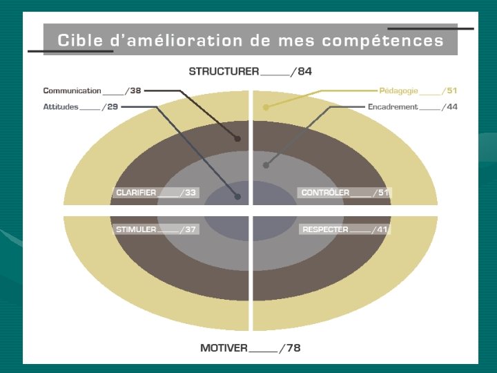 L’autoévaluation de votre pratique • Portera sur quatre facettes de la compétence: – – Clarifier Contrôler Stimuler Respecter } } Structurer Motiver • Pour chaque facette, il y a quatre axes : – – La pédagogie La communication L’encadrement Les attitudes