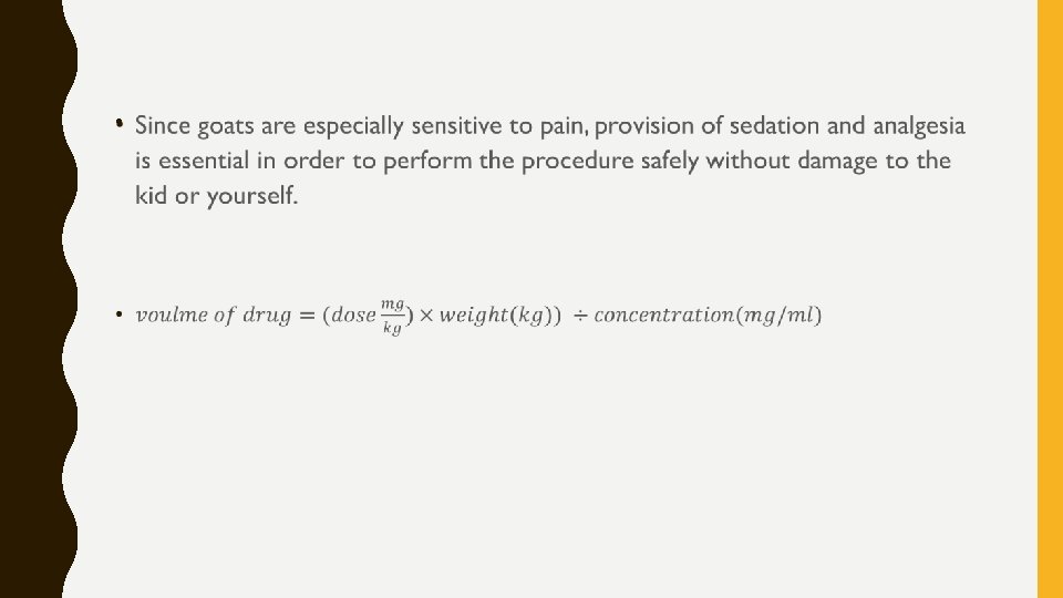 VACCINATION HISTORY • A complete history of the animal should be obtained with information including vaccination history as tetanus is a major concern when castrating goats, and if the animal has been vaccinated for tetanus, then a booster must be administered. If the goat has not been previously been vaccinated, then the animal should receive tetanus antitoxin, in this case the kid would receive 150 to 250 units of tetanus antitoxin before the procedure.
