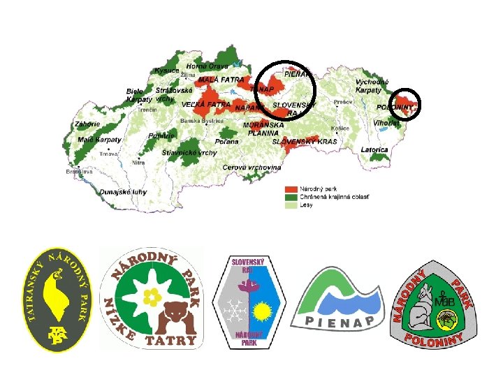 • lesy – prevládajú smrekové a bukové lesy, v Tatrách a Nízkych Tatrách aj kosodrevina a alpínske lúky • Národné parky - TANAP, NP Nízke Tatry, Pieninský NP, NP Poloniny, NP Slovenský raj
