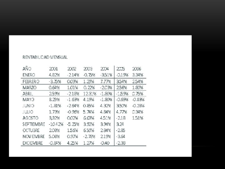 ESTE CUADRO MUESTRA EL RENDIMIENTO QUE HA DEMOSTRADO ESTE INSTRUMENTO DESDE SEPTIEMBRE 2002 HASTA JULIO DE 2006