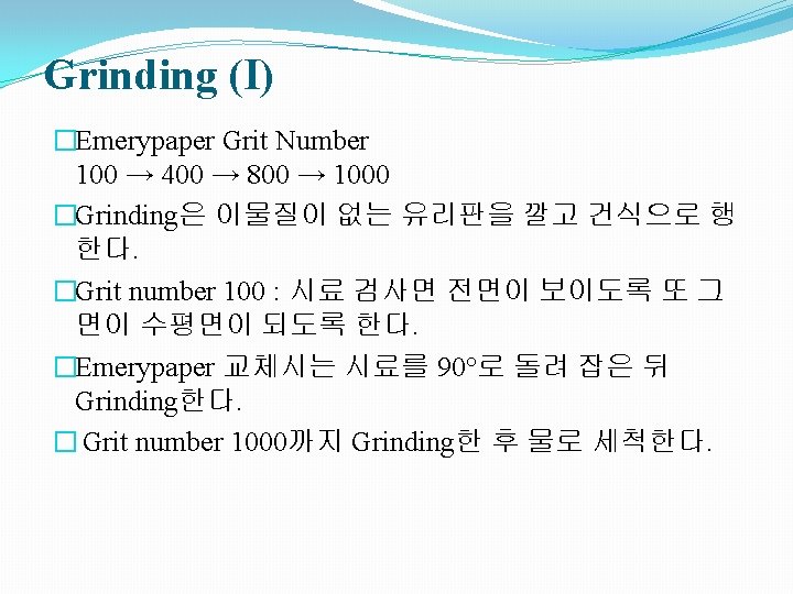 Preparation of Specimen Cutting Sampling Mounting Grinding Polishing Slides: 16 Download presentation 현미경 조직관찰용 시편 준비 �Preparation of Specimen Cutting (Sampling) → Mounting → Grinding → Polishing → Etching �Analysis of Microstructure - Isotropy and Anisotropy - Homogeneity and Inhomogeneity Precision Cutter Mounting �Mounting : 채취한 시편을 수지 등에 고정 �Cold Mounting �Hot Mounting Cold Mounting (I) Cold Mounting (II) Hot Mounting Grinding (II) Polishing (1) Polishing (III) Etching (부식) Etching