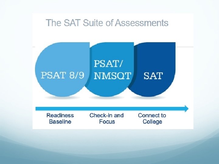 College Board SAT College admissions test used by most colleges and universities to make admission decisions Offered nationally 7 times per year Sections include Math, Evidence-Based Reading and Writing plus an optional Essay Scored on a scale of 200 -800 A perfect score is 1600 According to College Board their college readiness score indicates that the student has a 75% chance of earning at least a C in specific first semester, credit-bearing college courses. College Readiness Benchmark for Texas public universities: 1070 combined score with a minimum of 500 each on math and reading College Readiness Benchmark per College Board: Math 530 Evidenced Based Reading & Writing 480