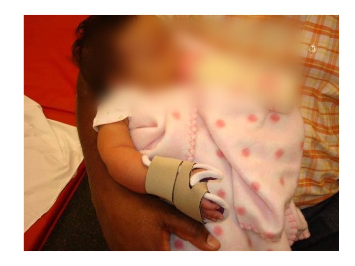 Treatment-Splinting Goals: Protect joint Prevent contractures Promote increased function Deficits determine splinting needs Not all infants need splinting.