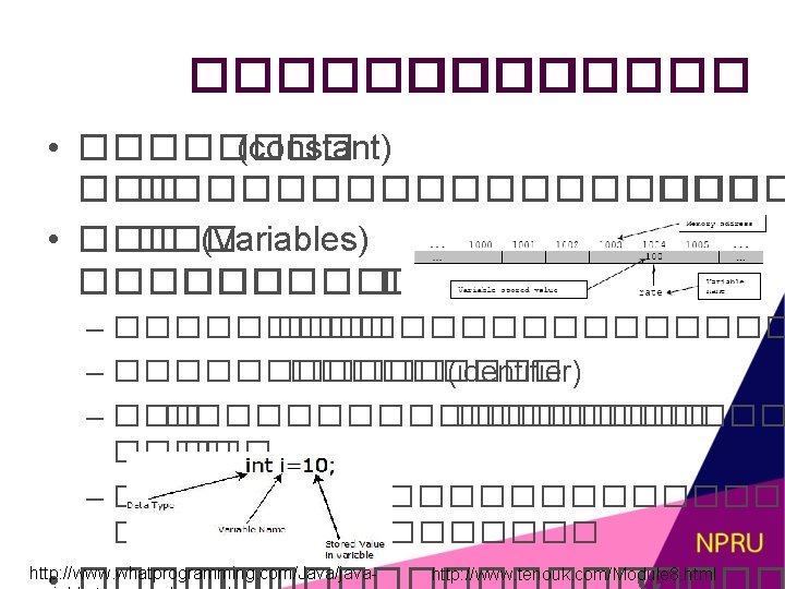 �������� (Variables) • ��������������� – ����� (local variable) – ������� (global variable) • ��������� https: //www. codecademy. com/en/forum_questions/53 a 6 b 2 c 48 c 1 ccc 0 d 3 d 0039 eb https: //www. codecademy. com/en/forum_questions/5149