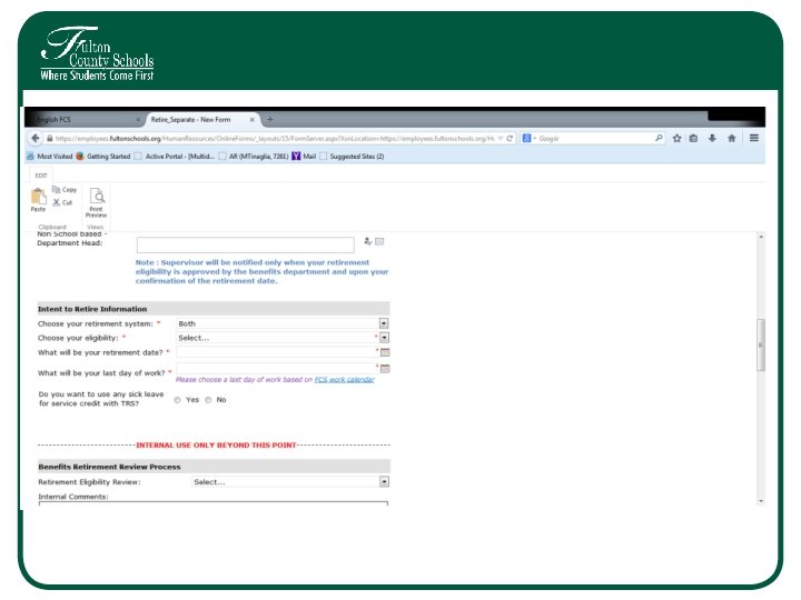 STEP 1 • Submit Intent to Retire in Fulton Schools Portal