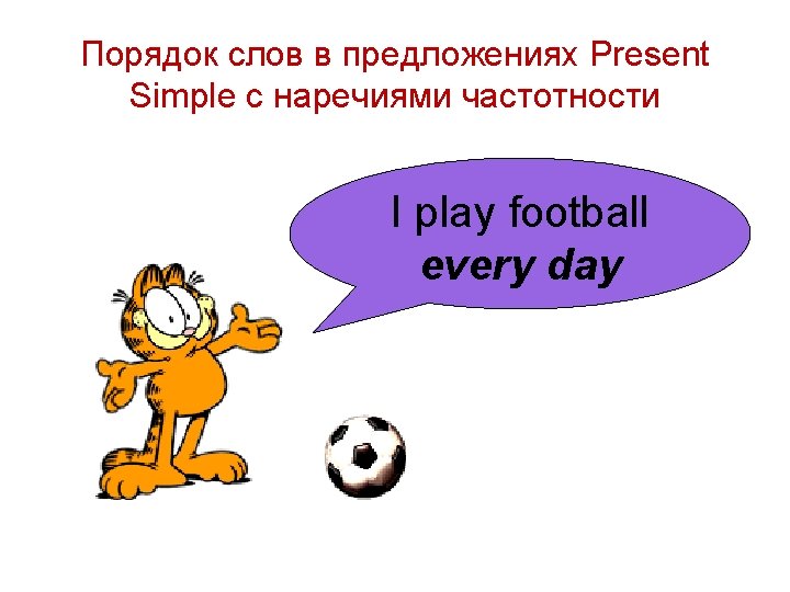 I play football You play football We play football They play football (3 лицо, ед. ч. ) He plays football (3 лицо, ед. ч. ) She plays football (3 лицо, ед. ч. ) Sam plays football (3 лицо, ед. ч. ) My sister plays football
