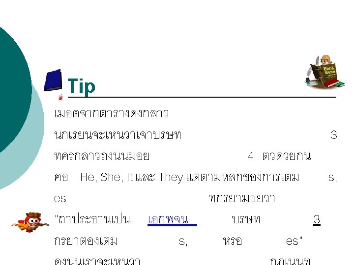 Tip Persons (บรษ ) First Person (บรษท 1) Second Person (บรษท 2) Third Person (บรษท 3) Singular (เอกพจน ) Plural (พหพจน ) I We You He She It They