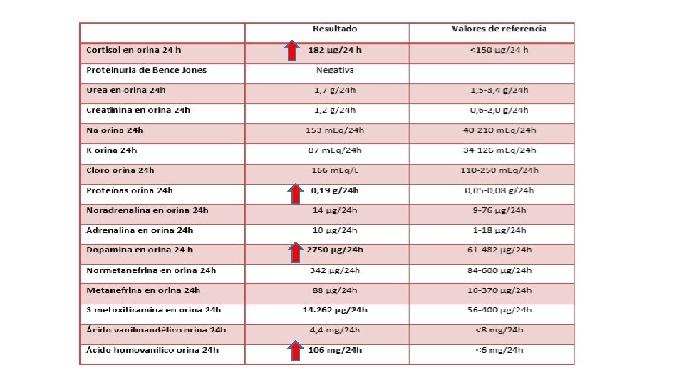 Diagnósticos diferenciales v Feocromocitoma de localización adrenal o extraadrenal v Aumento los niveles de metanefrinas y catecolaminas. ü Cirugía previa. ü Hipoglucemia. ü Cetoacidosis diabética. ü Situación de estrés grave. ü Tabaquismo. ü Insuficiencia cardiaca congestiva. ü Supresión brusca del alcohol. v Fármacos: ü Antidepresivos tricíclicos, venlafaxina, ü Fenoxibenzamina, fentolamina. ü Prazosina, doxazosina, Terazosina. ü Inhibidores de la monoamina oxidasa (MAO). ü Levodopa. ü Buspirona. ü Paracetamol.