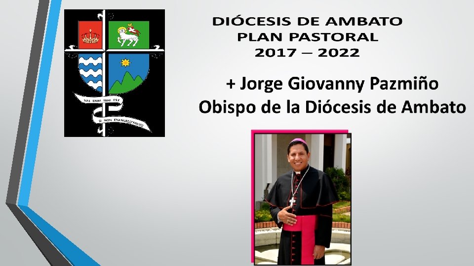 PRESENTACIÓN Queridos hermanos: SACERDOTES, DIÁCONOS, RELIGIOSOS-AS, SEMINARISTAS Y LAICOS Breve historia , Escudo Episcopal Nuestro Plan: Se trata de un proceso comunitario que busca responder a la realidad concreta y que supone un grado de corresponsabilidad y acceso a la toma de decisiones Marco Referencial: fase de estudio, investigación, reflexión pastoral y toma de decisiones. Se construye en base a tres elementos: Marco de la Realidad (Ver), Marco Iluminativo (Juzgar) y Marco Operativo (Actuar).