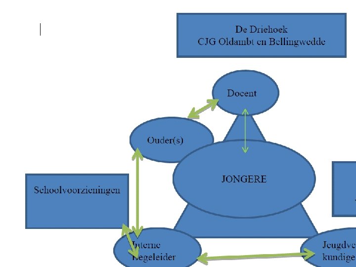 CJG Oldambt en Bellingwedde Van start in november 2011 Kernpartners: - de gemeenten Oldambt en Bellingwedde; - GGD/JGZ; - Bureau Jeugdzorg; - Het Oude Ambt; - MEE Groningen; - Neon/’t Schienvat; - Accare en Jonx (per 2013); Schilpartners: voorschoolse voorzieningen, scholen en andere instellingen