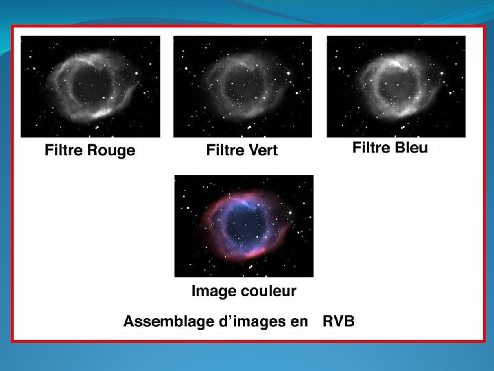 Elles ont également donné lieu à un procédé de réalisation de photographies en trois couleurs pour l’astronomie, en plus de constituer des progrès utiles pour la science de la photographie. Herschel 36 (cœur de la Lagune) Ces techniques permettent d’associer à une plage de gris donnée une couleur spécifique qui a pour seul but de rendre les zones correspondantes plus visibles.