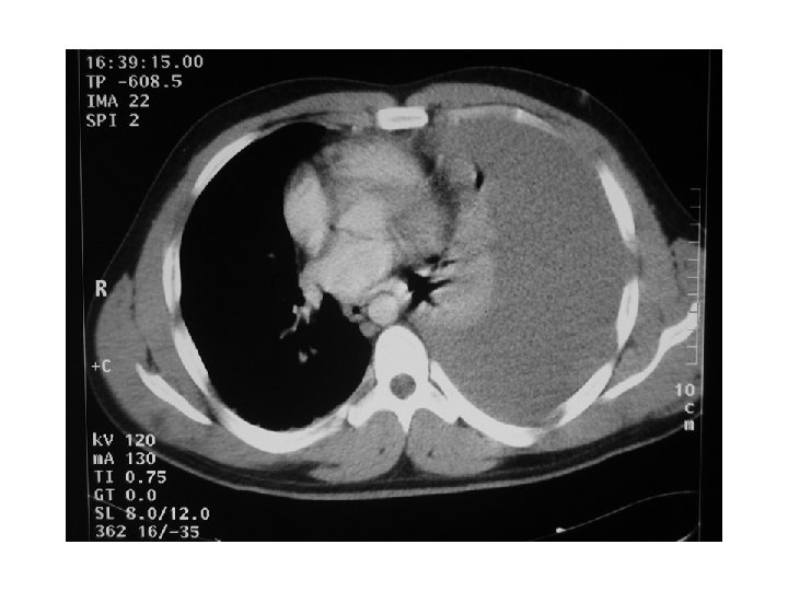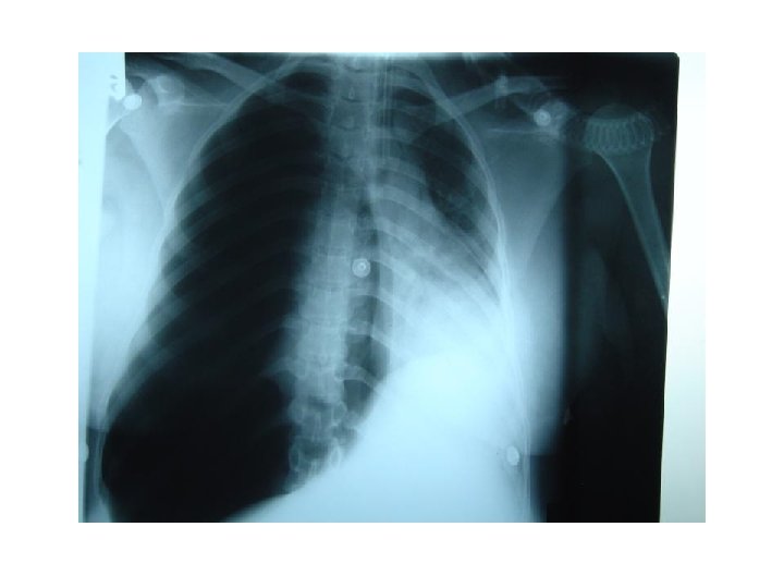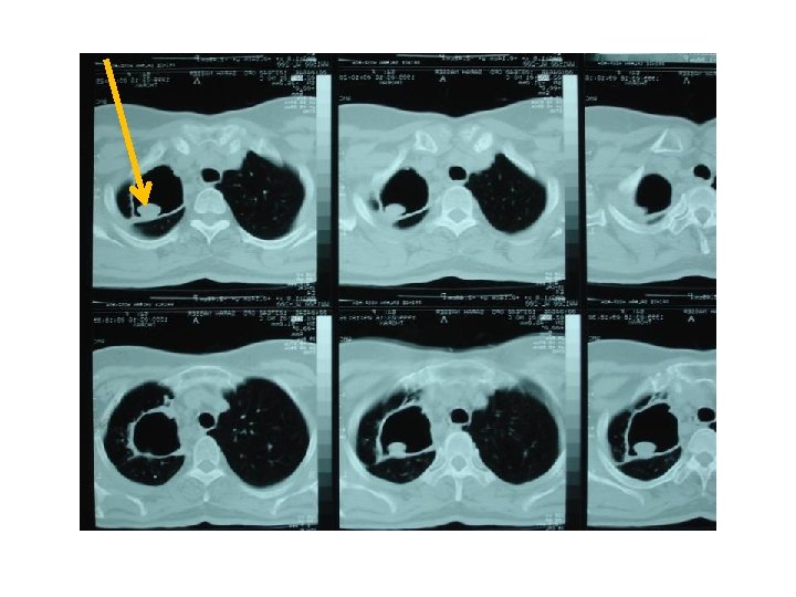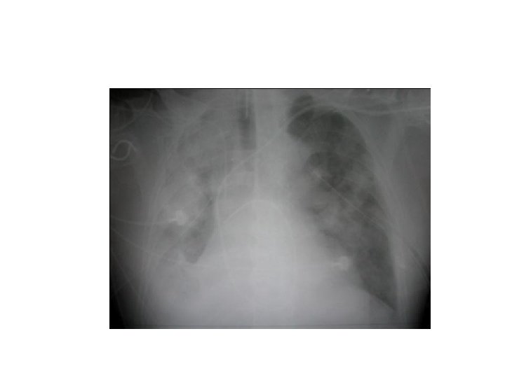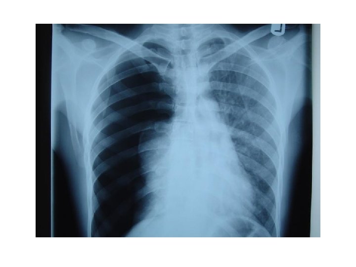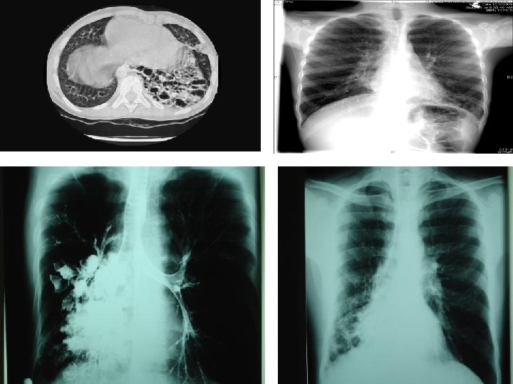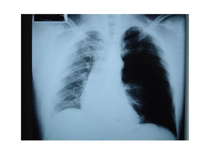 Left bronchus syndrome : Chronic condition , it is the end sequelae ﺍﻟﻨﺘﻴﺠﺔ ﺍﻟﻨﻬﺎﺋﻴﺔ of lung destruction due to TB In the previous slide , notice the bronchioectatic changes all over the lung ! Rt lung : pt still can breath from it , although it has apical scarring , Rt upper zone infiltration. Lt Lung : has Abcess cavity , Air Fluid levels , cystic bronchiectasis. If we did bronchoscopy , bronchoalveolar lavage , we will see the Fast Bacilli of Mycobacterium TB , which are resistant to 1 st , 2 nd and 3 rd line anti-TB medications ! ﻧﺘﻴﺠﺔ ﺑﺆﺮﺓ ﺍﻟﺘﻬﺎﺑﻴﺔ Left bronchus syndrome : The study was done at KKUH , if u r interested : http: //www. ncbi. nlm. nih. gov/pmc/articles/PMC 462386/pdf/thorax 00339 -0050. pdf 0