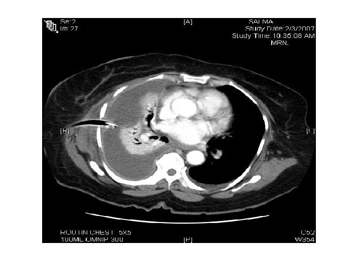 ü - ( Sometimes we see the cyst ruptured to the pleural cavity ) Why some of the cyst rupture and others do not rupture even if they are big cysts ? It depends on the feeding bronchus , if the feeding bronchus is big , the cyst will rupture even if it is small. And if the feeding brochus is small , it will not rupture Treatment Surgery : Lobectomy Injection of concentrated saline 20% for 2 -4 mins ( usually the used Saline is 0. 9%) , to kill the scolex ﺍﻷﺠﻨﺔ which are able to rupture to the pleural cavity and form new cysts ! We cover the whole area with sterile towels , to prevent contamination. Apendazole is given after or before the surgery Saline is injected during the surgery ( they used to inject formaline “ aminarol ? “ ) : ﻓﻴﻪ ﺗﻘﺮﻳﺒﺎ ﻛﻞ ﺍﻟﻠﻲ ﺷﺎﺭﺣﻪ ﺍﻟﺪﻛﺘﻮﺭ ﺑﺎﻟﺼﻮﺭ , ﻣﻮﻗﻊ ﺣﻠﻮ http: //mmcts. ctsnetjournals. org/cgi/content/full/2005/0425/mmcts. 2004. 000307#SEC 2 Cyst can be anywhere, but mainly in the liver or lung