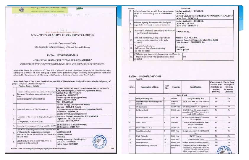 Introduction I wish to Introduce myself as an Empanelled Chartered Engineer by Ministry of New and Renewable Energy to certify Total Bill of material Required for initial setting up of Solar Power Projects and to verify the reconciliation certificate for Commissioned Projects. Wherein I have been Solar Consultants to leading Builders like Unitech, Chintels, KLJ Group etc. As an EPC company/Consultancy in Solar Industry one of the major requirements to manage projects cost is by getting Excise and Customs Duty Exemptions. As per recent developments Ministry Of New and Renewable Energy has introduced New simplified and improved procedure for online submission of Total Bill of Materials (BOM) and application for issue of Concessional Customs Duty Certificate (CCDC) and Excise Duty Exemption Certificate (EDEC) for availing Duty Concession/Exemption on the procurement of Items , materials , components required for initial setting up of solar power plants in India. These Exemptions can be availed for a minimum capacity of 100 KW as a single project or Bundled Project. In case of Bundled projects as special case , Erection Procurement Commission (EPC)/RESCO contractors shall apply on the behalf of end users/beneficiary in separate category "Bundling" project in the MNRE website (http: //164. 100. 195. 45/ccms) in form of Bill of Materials for approving and issue of Custom and Excise Duty Exemption Certificate (CCDC/EDEC) and withdraw materials for installation of Solar