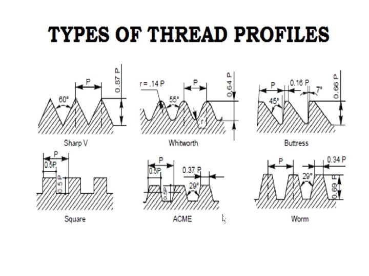 SCREW THREAD Ø Helical grooves cut on a cylinderical component Ø Types of thread • V-thread • Square thread