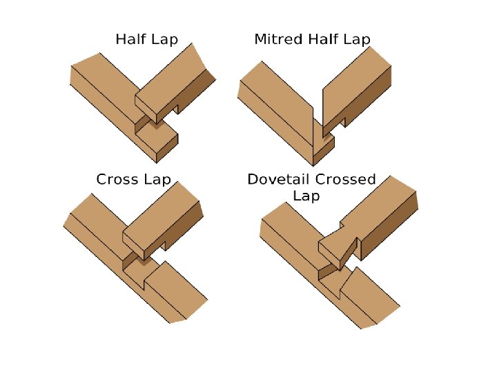 WOODEN JOINTS Ø joints which combine two or more wooden parts together Ø examples of wooden joints: • Corner mortise and tenon joint • Cross halving joint • Tee halving joint • Dovetail joint