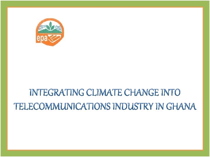 Outputs The expected outputs of the project will include: • Using telecommunication for monitoring and adapting to climate change • Establishing links with telecommunication sectors on climate change issues • Awareness-raising of Climate Change and telecommunication in Ghana • A website created i. e. www. epa. gov. gh/epavodafone