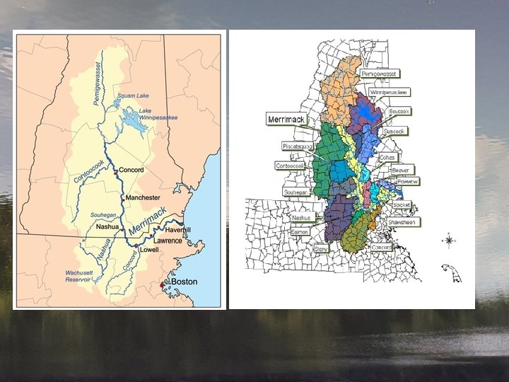 The Merrimack River is a priority river for water quality protection in New England. Why? • The population of NH is 1. 3 million and approximately 800, 000 residents use public water (as opposed to private wells) • The Merrimack River provides drinking water for 600, 000 people in NH and Massachusetts