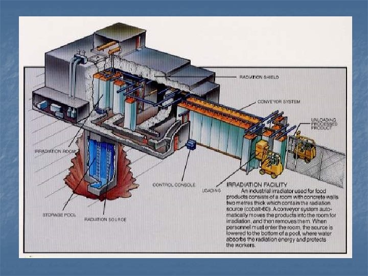 Irradiation n n Food is exposed to a controlled amount of radiation for a specific time to destroy organisms that would cause spoilage. Energy is transferred in the form of waves (Gamma Waves) The more waves the food is exposed too, the greater the preservation effect. Relatively new method, because it is radiation there is still concerns