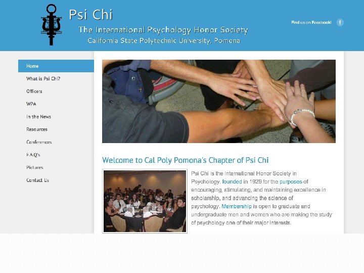The Website �psichicpp. com, by Webmaster Rachelle Webb �Includes membership information and links to Psi Chi International website �Resources for the club, club events, professional conferences, and on- and off-campus opportunities �Take the Psi Chi survey!