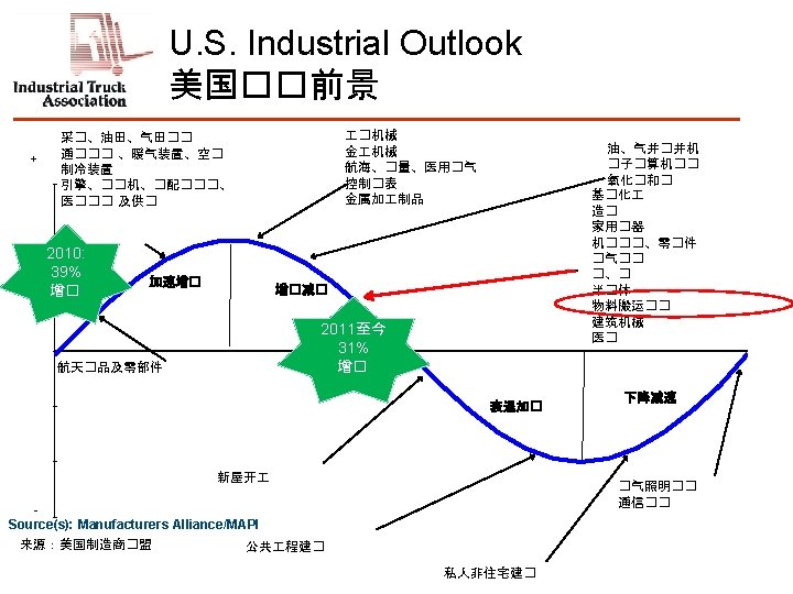 Manufacturing Industrial Production 制造�生�指数 06年 07年 07年 08年 08年 09年 09年 10年 10年 11年 11年 12月 3月 6月 9月 12月 3月 6月 9月 12月 Source(s): Federal Reserve Board and Manufacturers Alliance/MAPI 来源:�邦��金�察小�和美国制造商�盟