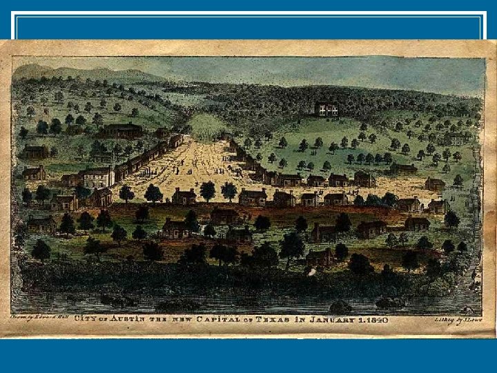 New Capital Lamar thought Houston was too far east n He wanted the capital to be moved west n In 1839 he chose Waterloo and renamed it Austin n Who was it named for? n Many were not happy- they said Austin was isolated, too far west and in Comanche territory n