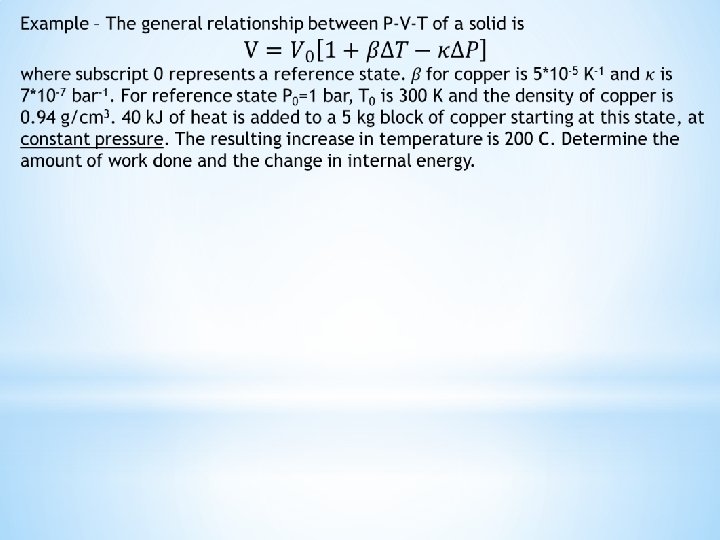 Example – A batch of 20 tons of liquid copper is to be cooled from 1200 °C to 1150 °C by adding solid copper at 25 C. 40000 k. J are lost during the time it takes to make the addition and the temperature to stabilize. What quantity of solid is used?