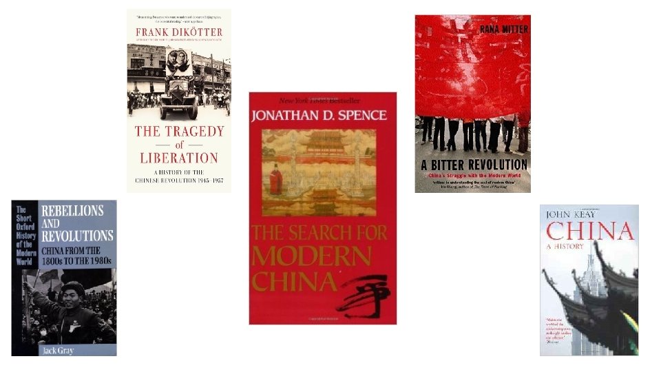 Founding of the PRC Jonathan D. Spence – The Search for Modern China. Jack Gray – Rebellions and Revolutions: China from the 1800 s to the 1980 s. Rana Mitter – A Bitter Revolution: China’s struggles with the Modern World. John Keay – China, a History. Jonathan Feby – The Penguin History of Modern China: The Fall and Rise of a Great Power, 1850 - 2009. Frank Dikötter – The Tragedy of Liberation: A History of the Chinese Revolution 1945 -1957.